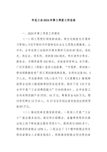 / 【七哥公文】2024年:市总工会2024年第三季度工作总结+更多免费公文+VX:QiGeGongWen2024