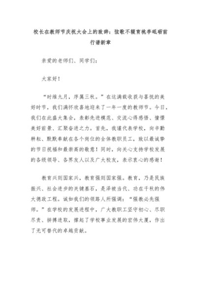 【七哥公文】2024年:校长在教师节庆祝大会上的致辞:弦歌不辍育桃李砥砺前行谱新章+更多免费公文+VX:QiGeGongWen2024