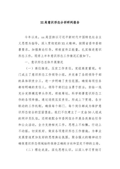 / 【七哥公文】2024年:XX局意识形态分析研判报告+更多免费公文+VX:QiGeGongWen2024