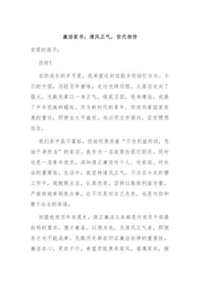 【七哥公文】2024年:廉洁家书:清风正气,世代相传+更多免费公文+VX:QiGeGongWen2024