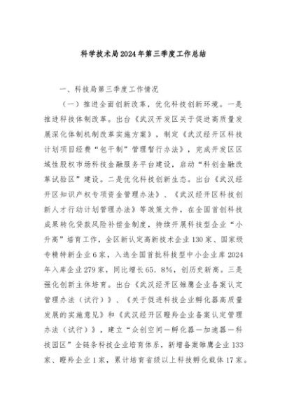 / 【七哥公文】2024年:科学技术局2024年第三季度工作总结+更多免费公文+VX:QiGeGongWen2024