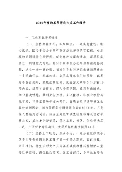 / 【七哥公文】2024年:2024年整治基层形式主义工作报告+更多免费公文+VX:QiGeGongWen2024