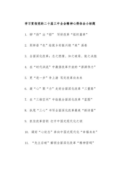 / 【七哥公文】2024年:学习贯彻党的二十届三中全会精神心得体会小标题+更多免费公文+VX:QiGeGongWen2024