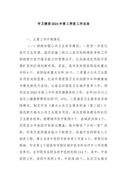 / 【七哥公文】2024年:市卫健委2024年第三季度工作总结+更多免费公文+VX:QiGeGongWen2024