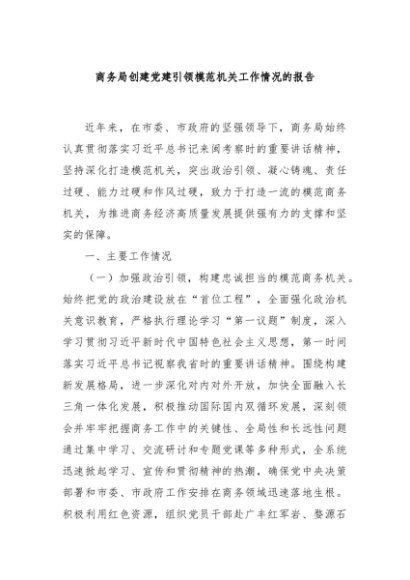 / 【七哥公文】2024年:商务局创建党建引领模范机关工作情况的报告+更多免费公文+VX:QiGeGongWen2024