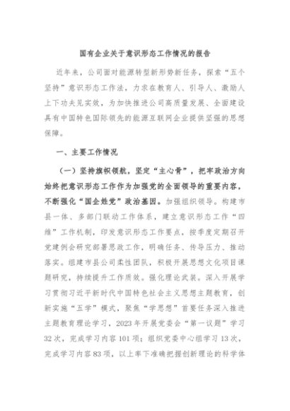 / 【七哥公文】2024年:国有企业关于意识形态工作情况的报告+更多免费公文+VX:QiGeGongWen2024