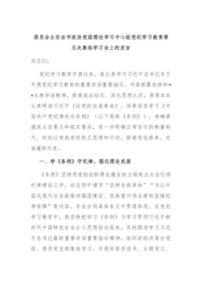 【七哥公文】2024年:委员会主任在市政协党组理论学习中心组党纪学习教育第五次集体学习会上的发言+更多免费公文+VX:QiGeGongWen2024