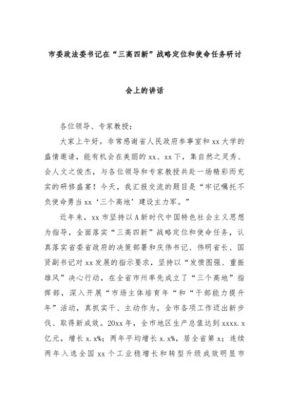 【七哥公文】2024年:市委政法委书记在“三高四新”战略定位和使命任务研讨会上的讲话+更多免费公文+VX:QiGeGongWen2024