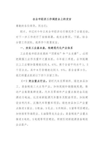 / 【七哥公文】2024年:在全市经济工作调度会上的发言+更多免费公文+VX:QiGeGongWen2024