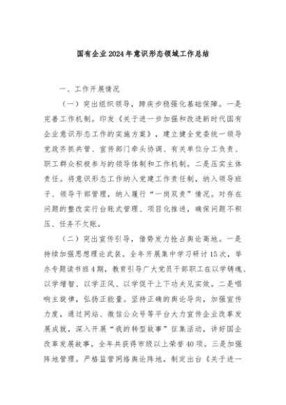 / 【七哥公文】2024年:国有企业2024年意识形态领域工作总结+更多免费公文+VX:QiGeGongWen2024