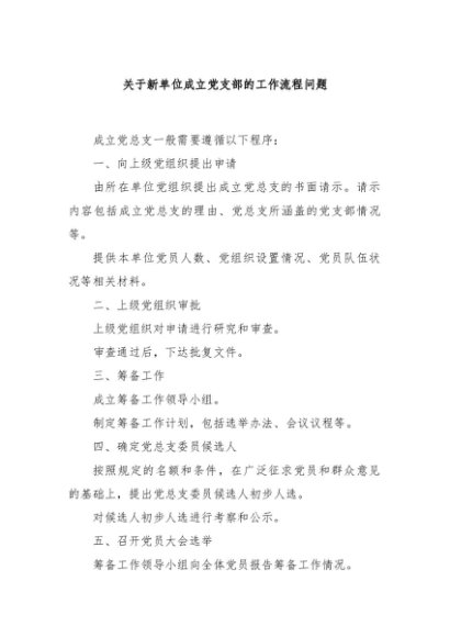 / 【七哥公文】2024年:关于新单位成立党支部的工作流程问题+更多免费公文+VX:QiGeGongWen2024
