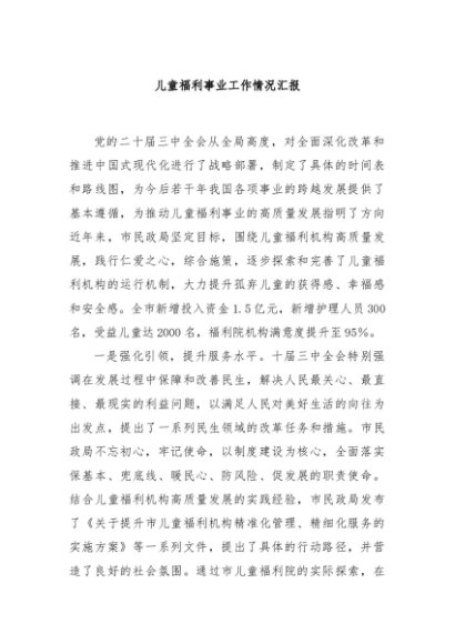 / 【七哥公文】2024年:儿童福利事业工作情况汇报+更多免费公文+VX:QiGeGongWen2024
