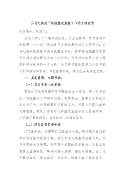 / 【七哥公文】2024年:公司纪委关于巡视整改监督工作的汇报发言+更多免费公文+VX:QiGeGongWen2024
