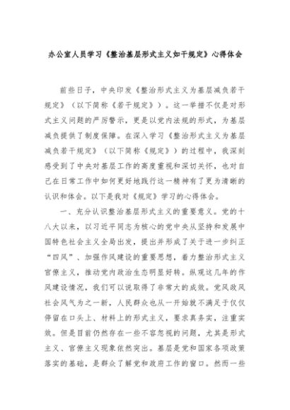 【七哥公文】2024年:办公室人员学习《整治基层形式主义如干规定》心得体会+更多免费公文+VX:QiGeGongWen2024