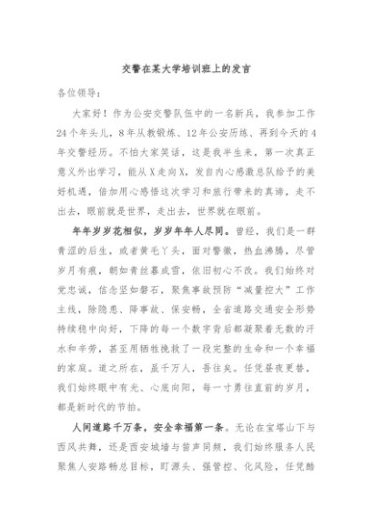 / 【七哥公文】2024年:交警在某大学培训班上的发言+更多免费公文+VX:QiGeGongWen2024