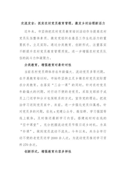 【七哥公文】2024年:交流发言:抓实农村党员教育管理,激发乡村治理新活力+更多免费公文+VX:QiGeGongWen2024