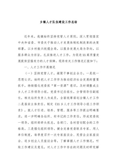 / 【七哥公文】2024年:乡镇人才队伍建设工作总结+更多免费公文+VX:QiGeGongWen2024