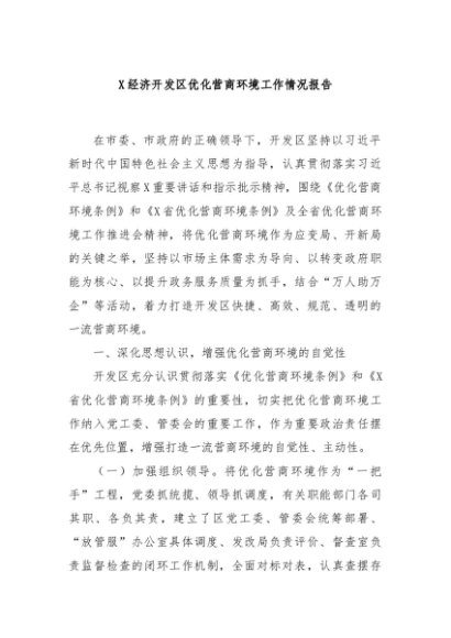 / 【七哥公文】2024年:X经济开发区优化营商环境工作情况报告+更多免费公文+VX:QiGeGongWen2024