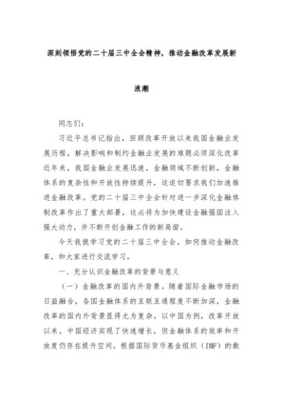 【七哥公文】2024年:深刻领悟党的二十届三中全会精神,推动金融改革发展新浪潮+更多免费公文+VX:QiGeGongWen2024