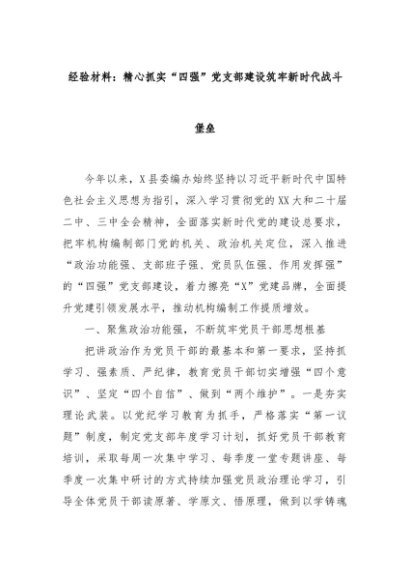 【七哥公文】2024年:经验材料:精心抓实“四强”党支部建设筑牢新时代战斗堡垒+更多免费公文+VX:QiGeGongWen2024