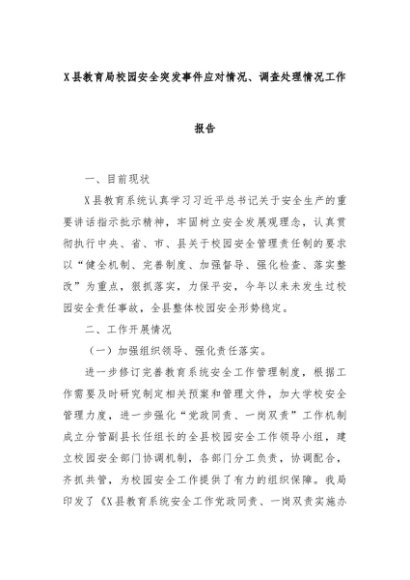 【七哥公文】2024年:X县教育局校园安全突发事件应对情况、调查处理情况工作报告+更多免费公文+VX:QiGeGongWen2024
