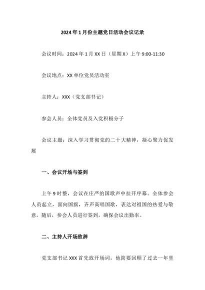 / 【七哥公文】2024年:2024年1月份主题党日活动会议记录+更多免费公文+VX:QiGeGongWen2024