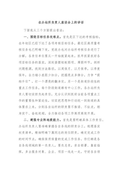/ 【七哥公文】2024年:在办站所负责人座谈会上的讲话+更多免费公文+VX:QiGeGongWen2024