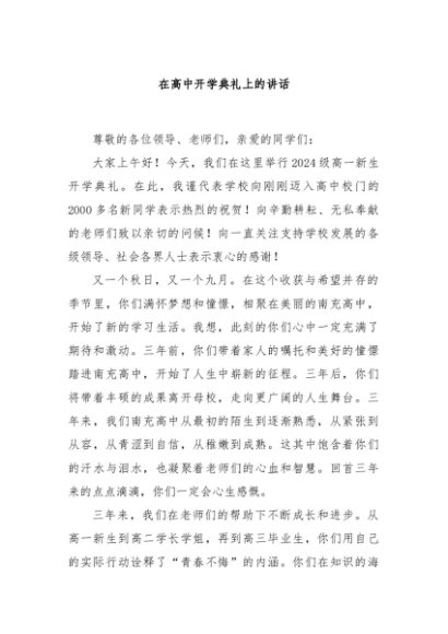 / 【七哥公文】2024年:在高中开学典礼上的讲话+更多免费公文+VX:QiGeGongWen2024