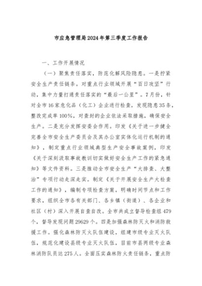 / 【七哥公文】2024年:市应急管理局2024年第三季度工作报告+更多免费公文+VX:QiGeGongWen2024