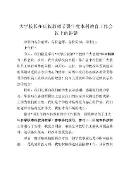 【七哥公文】2024年:大学校长在庆祝教师节暨年度本科教育工作会议上的讲话 (1)+更多免费公文+VX:QiGeGongWen2024