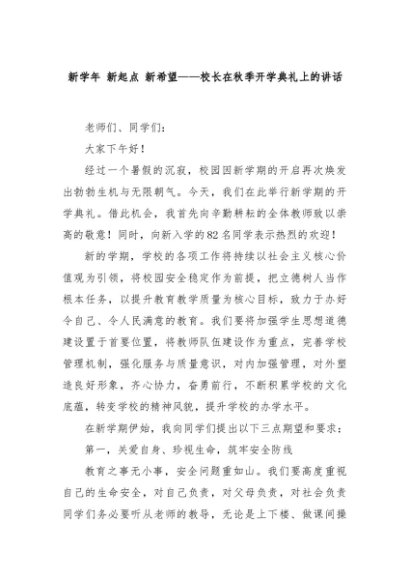 【七哥公文】2024年:新学年 新起点 新希望——校长在秋季开学典礼上的讲话+更多免费公文+VX:QiGeGongWen2024