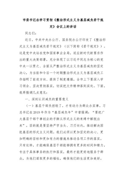 【七哥公文】2024年:市委书记在学习贯彻《整治形式主义为基层减负若干规定》会议上的讲话+更多免费公文+VX:QiGeGongWen2024