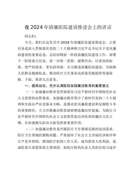 / 【七哥公文】2024年:在2024年清廉医院建设推进会上的讲话+更多免费公文+VX:QiGeGongWen2024