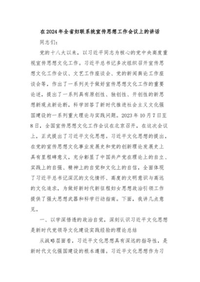 / 【七哥公文】2024年:在2024年全省妇联系统宣传思想工作会议上的讲话+更多免费公文+VX:QiGeGongWen2024