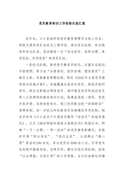 / 【七哥公文】2024年:党员教育培训工作经验交流汇报+更多免费公文+VX:QiGeGongWen2024