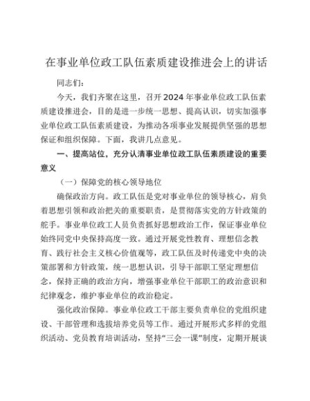 / 【七哥公文】2024年:在事业单位政工队伍素质建设推进会上的讲话+更多免费公文+VX:QiGeGongWen2024
