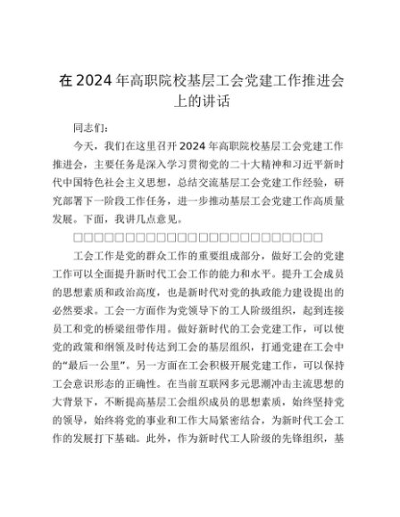 【七哥公文】2024年:在2024年高职院校基层工会党建工作推进会上的讲话+更多免费公文+VX:QiGeGongWen2024