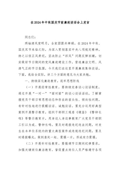 / 【七哥公文】2024年:在2024年中秋国庆节前廉政谈话会上发言+更多免费公文+VX:QiGeGongWen2024