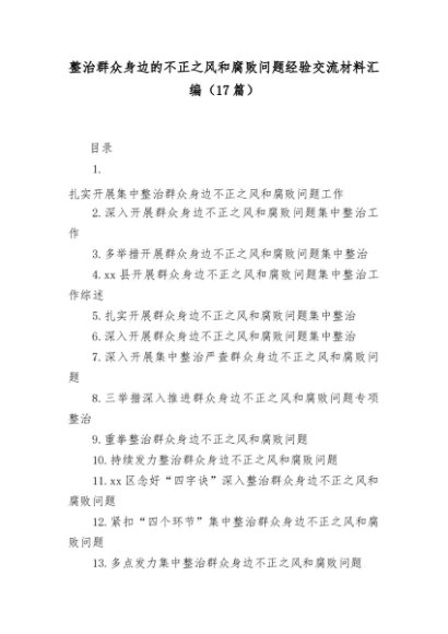 【七哥公文】2024年:(17篇)整治群众身边的不正之风和腐败问题经验交流材料汇编+更多免费公文+VX:QiGeGongWen2024