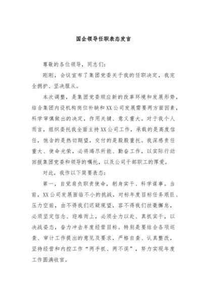 【七哥公文】2024年:国企领导任职表态发言+更多免费公文+VX:QiGeGongWen2024