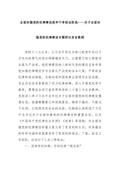 【七哥公文】2024年:全面加强党的纪律建设筑牢干净担当防线——关于全面加强党的纪律建设专题研讨发言提纲+更多免费公文+VX:QiGeGongWen2024