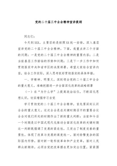 【七哥公文】2024年:党的二十届三中全会精神宣讲提纲+更多免费公文+VX:QiGeGongWen2024