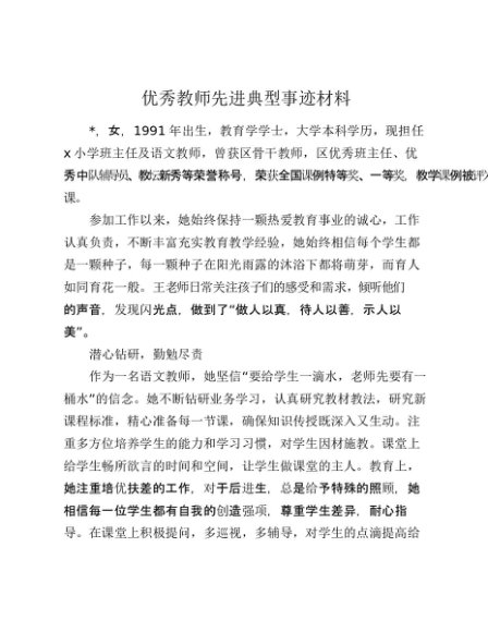 / 【七哥公文】2024年:优秀教师先进典型事迹材料 (1)+更多免费公文+VX:QiGeGongWen2024