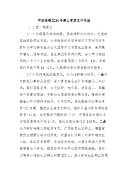 / 【七哥公文】2024年:市政法委2024年第三季度工作总结+更多免费公文+VX:QiGeGongWen2024