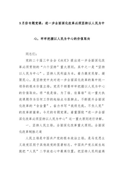 【七哥公文】2024年:9月份专题党课:进一步全面深化改革必须坚持以人民为中心,牢牢把握以人民为中心的价值取向+更多免费公文+VX:QiGeGongWen2024