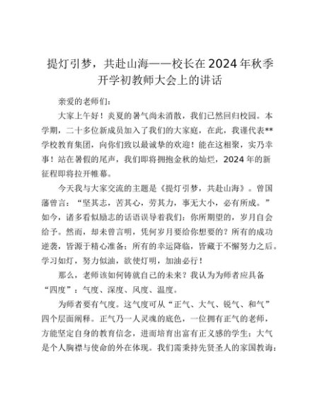 / 【七哥公文】2024年:学校校长在2024年秋季开学初教师大会上的讲话+更多免费公文+VX:QiGeGongWen2024