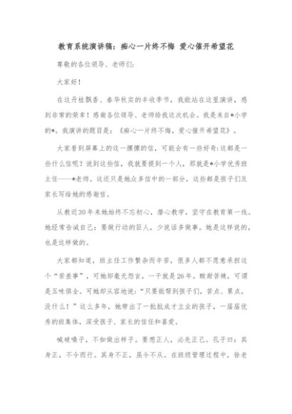 / 【七哥公文】2024年:教育系统演讲稿:痴心一片终不悔爱心催开希望花+更多免费公文+VX:QiGeGongWen2024