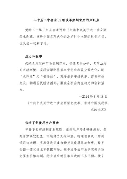 / 【七哥公文】2024年:二十届三中全会12组改革热词背后的知识点+更多免费公文+VX:QiGeGongWen2024