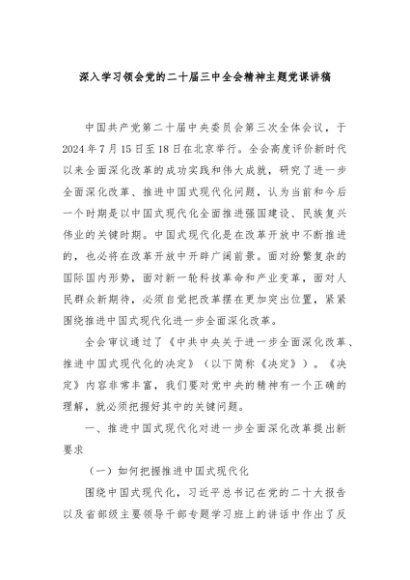/ 【七哥公文】2024年:深入学习领会党的二十届三中全会精神主题党课讲稿+更多免费公文+VX:QiGeGongWen2024