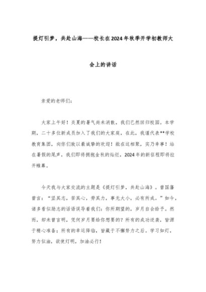 【七哥公文】2024年:提灯引梦,共赴山海——校长在2024年秋季开学初教师大会上的讲话+更多免费公文+VX:QiGeGongWen2024